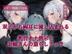 双子から両耳に流し込まれる乳首オナ指示とお姉さんの焦らしフェラ【甘虐幻想】
